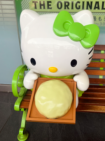 建物の外にメロンパン持ったキティちゃん居った😳